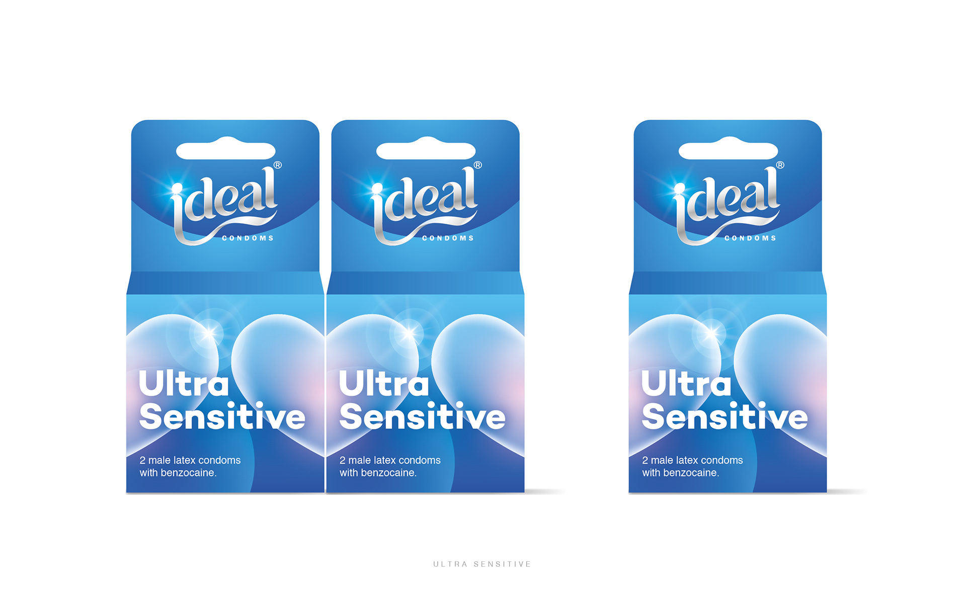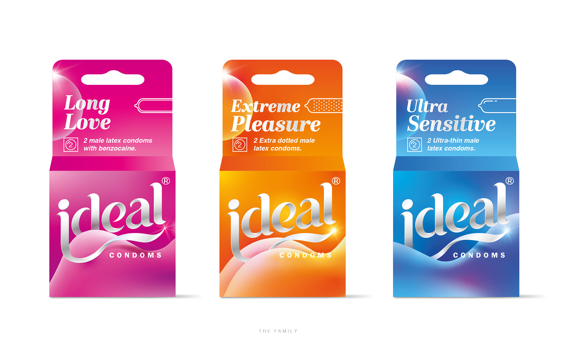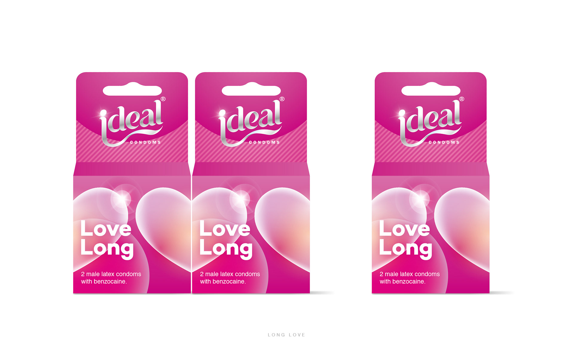 Two concepts for condoms packaging with three variants Ultra sensitive, Extra Dotted and Long Love.