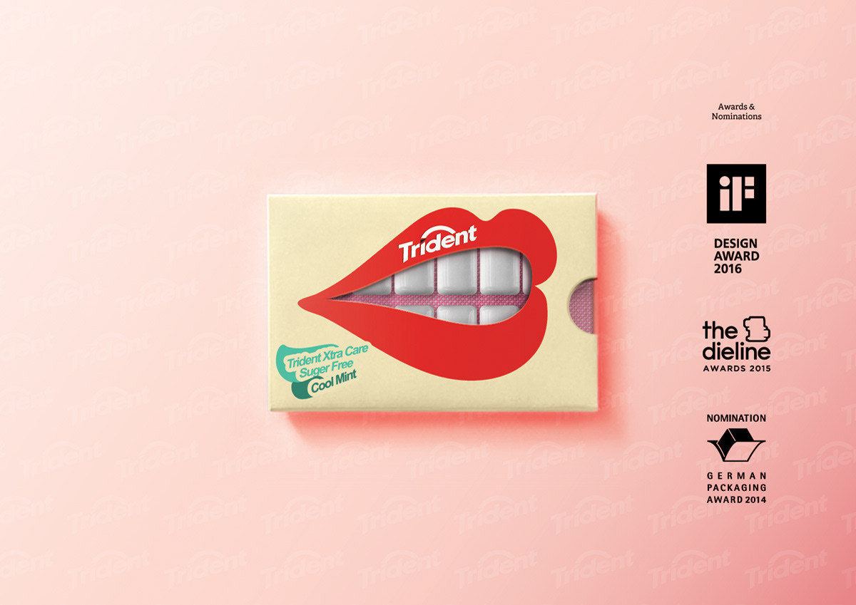Trident Gum has obtained two big global design awards, The iF Design Award 2015 in Germany and The Dieline Award 2015-1st place winner in the USA. The packaging was displayed in Chicago in How Design Live 2015 exhibition which is one of the biggest in the USA, it also has been nominated for The German Packaging Award (DVI) in Germany 2014.